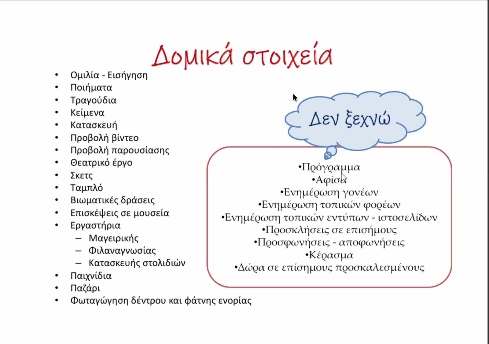 Δραστηριότητες, παιχνίδια, κατασκευές, βίντεο προβολή,..