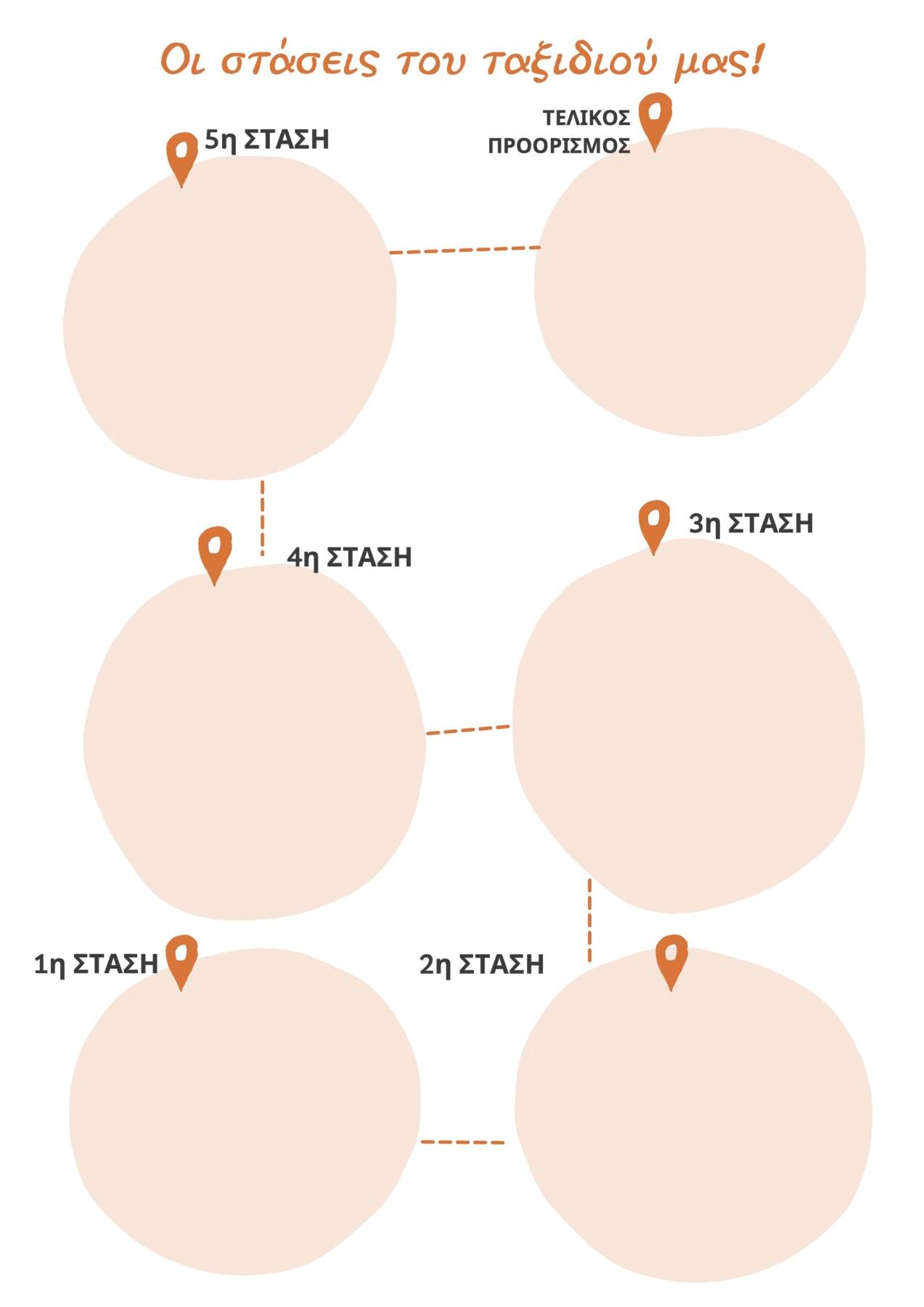 [Ανακοινώνουμε στα παιδιά πως πρέπει να βάλουμε σε σειρά τις στάσεις μας στον χάρτη, ώστε να σχηματίσουμε τη διαδρομή μας μέχρι τον τελικό προορισμό. Παρουσιάζουμε μια-μια τις εικόνες και τις βάζουμε σε σειρά]