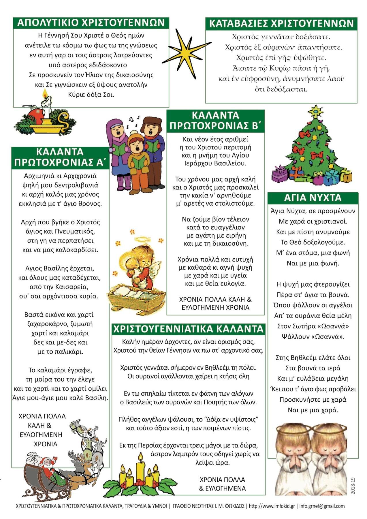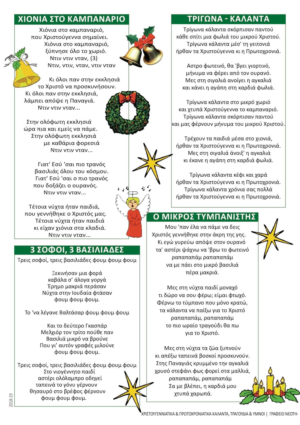 • ΧΡΙΣΤΟΥΓΕΝΝΙΑΤΙΚΑ ΤΡΑΓΟΥΔΙΑ: Επίσης σας αποστέλλουμε και Χριστουγεννιάτικα Τραγούδια που έχει εκδόσει το Γραφείο Νεότητας της Μητροπόλεώς μας για να αρχίσετε τις πρόβες για την Χριστουγεννιάτικη γιορτή σας ή για ψυχαγωγία των παιδιών.